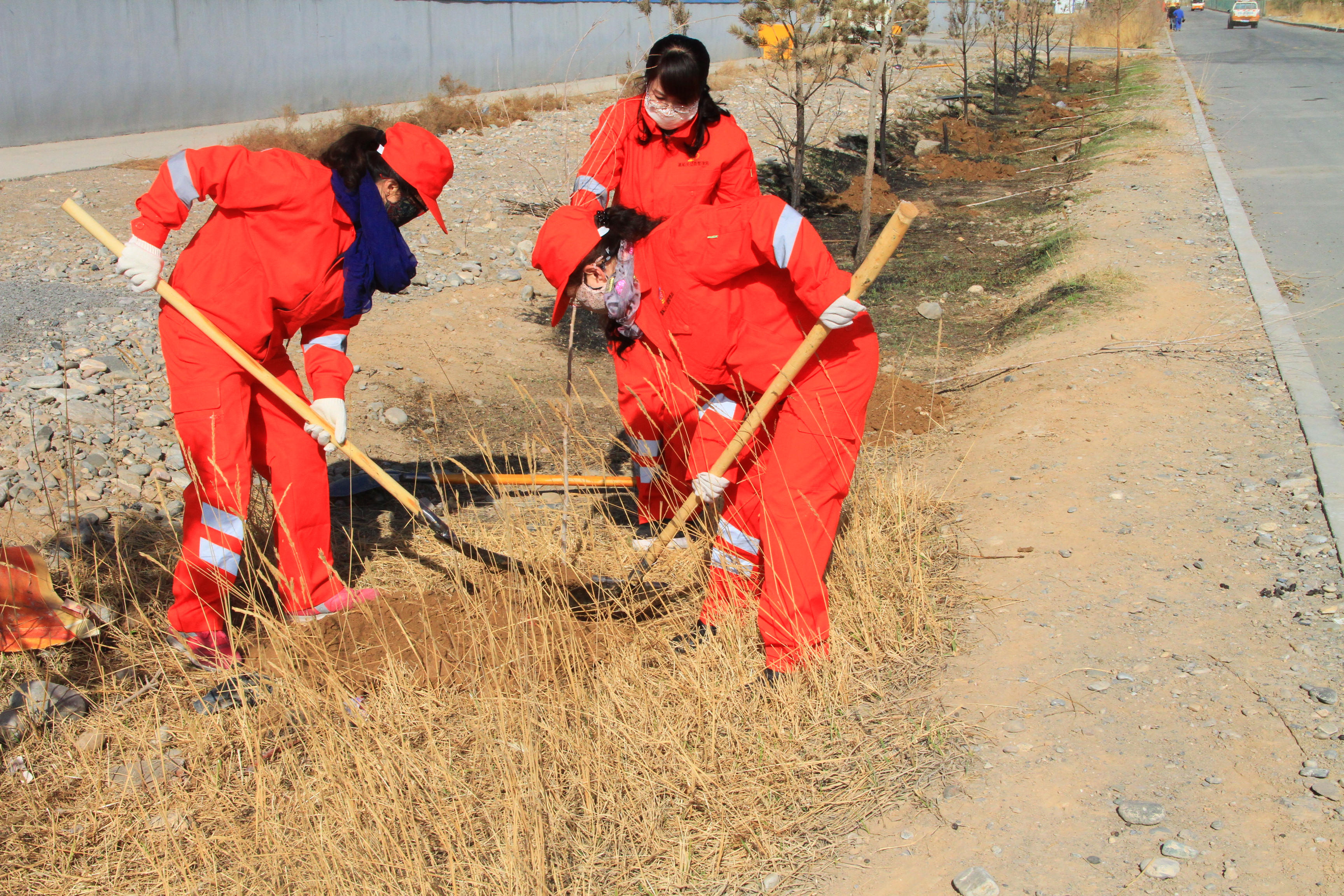职工正在进行植树