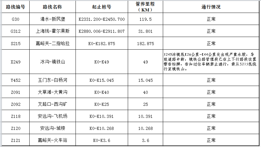 • 嘉峪关公路管理局管养公路路况信息(2017年12月1日)